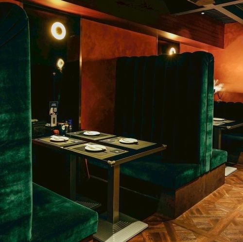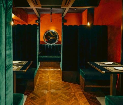B1에서는 차분한 공간에서 코스 요리를 즐길 수 있습니다.깊이있는 그린은 "the FRONT"의 컨셉 컬러.플로어의 소파는 고급감과 릴렉스가 공존하는, 특별한 한때를 연출합니다.부드러운 벨벳 질감과 차분한 톤의 그린.앉는 것만으로 등근이 쭉 뻗는 것 같은, 상질의 시간을 부디.
